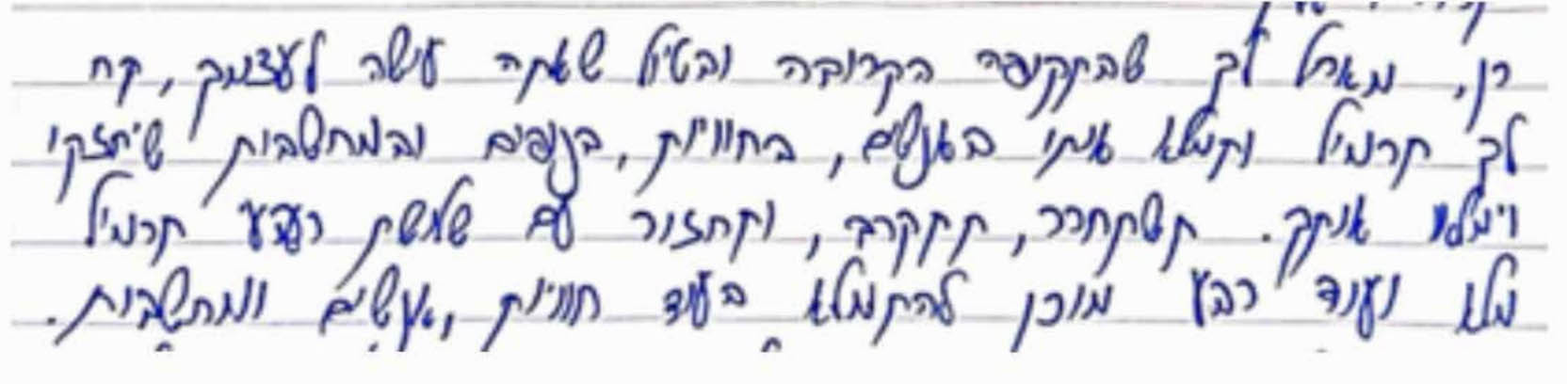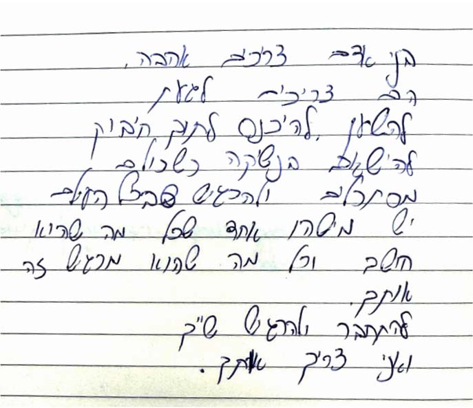 אוהב אותכם ועוד יותר מתגעגע אבל גם שלם וחזק וסומך עלי ועל האנשים שלי.